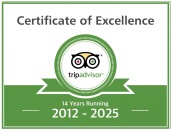 We are proud to have earned TripAdvisor Certificates of Excellence for 2012, 2013, 2014, 2015, 2016 and 2017.