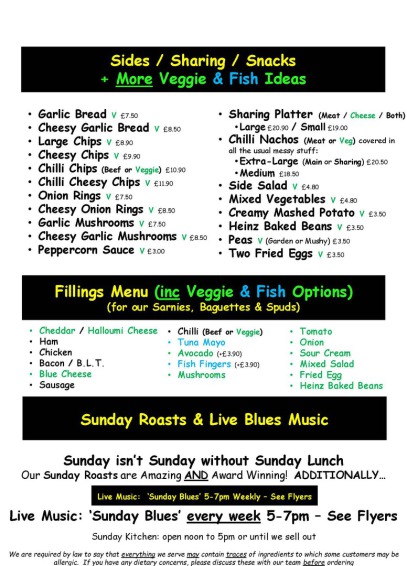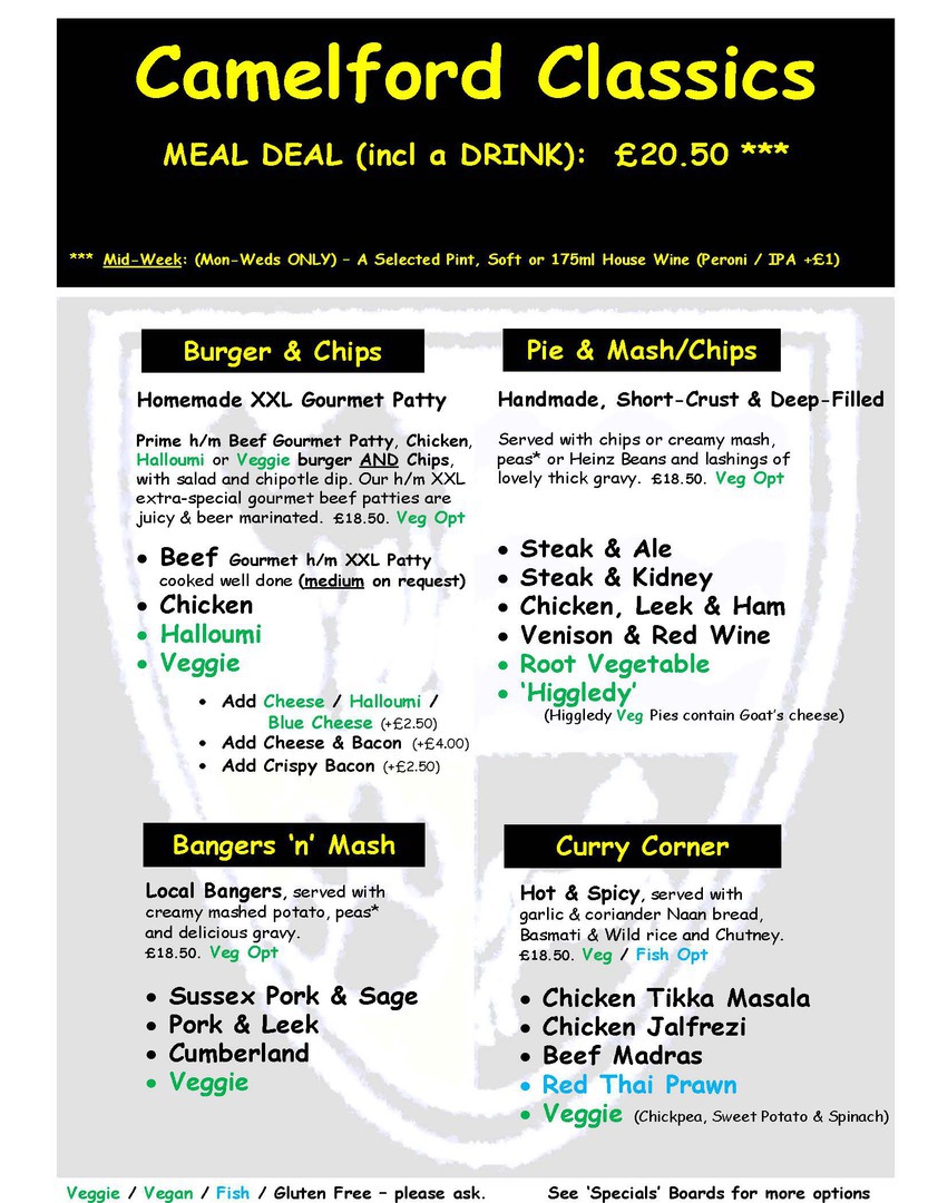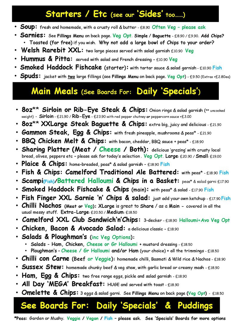 Here are the words for our Menu - but why not look at the photos and 'Customer Commnets' here. A picture paints a thousnad words.....