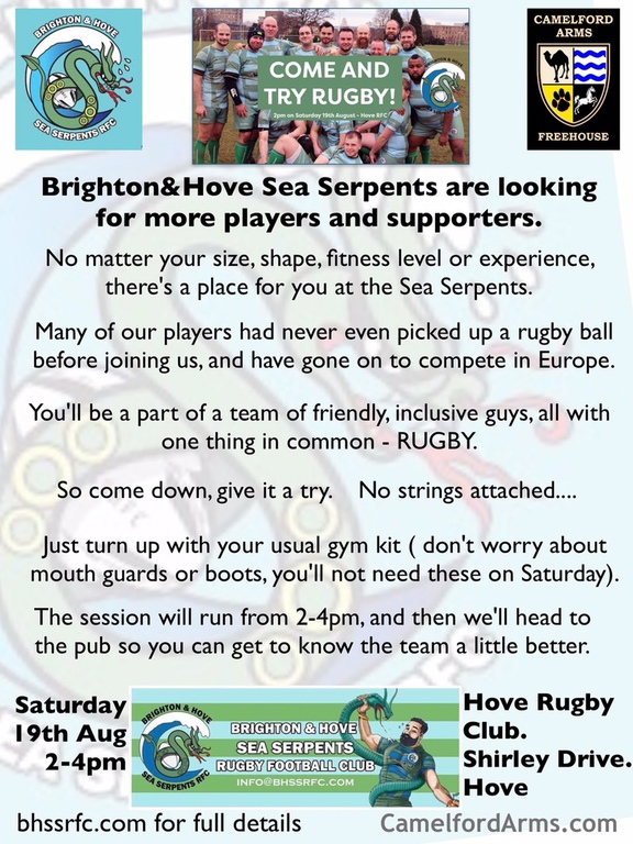 We are delighted to have been the original sponsors of Brighton's inclusive rugby team, Brighton & Hove Sea Serpents.